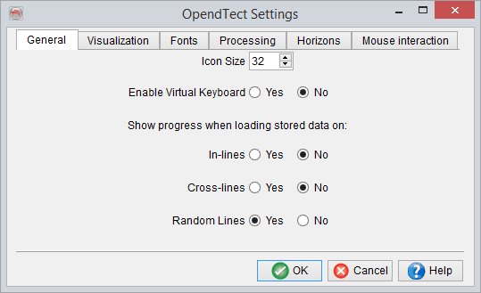 This option brings up an interface containing several tabs for defining various settings in OpendTect: