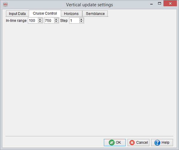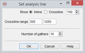 - Cruise control: The available item is either an inline or crossline range, depending on the choice of active line. This can be changed using the "Go to any position" button where the analysis line (number and type) can be set.