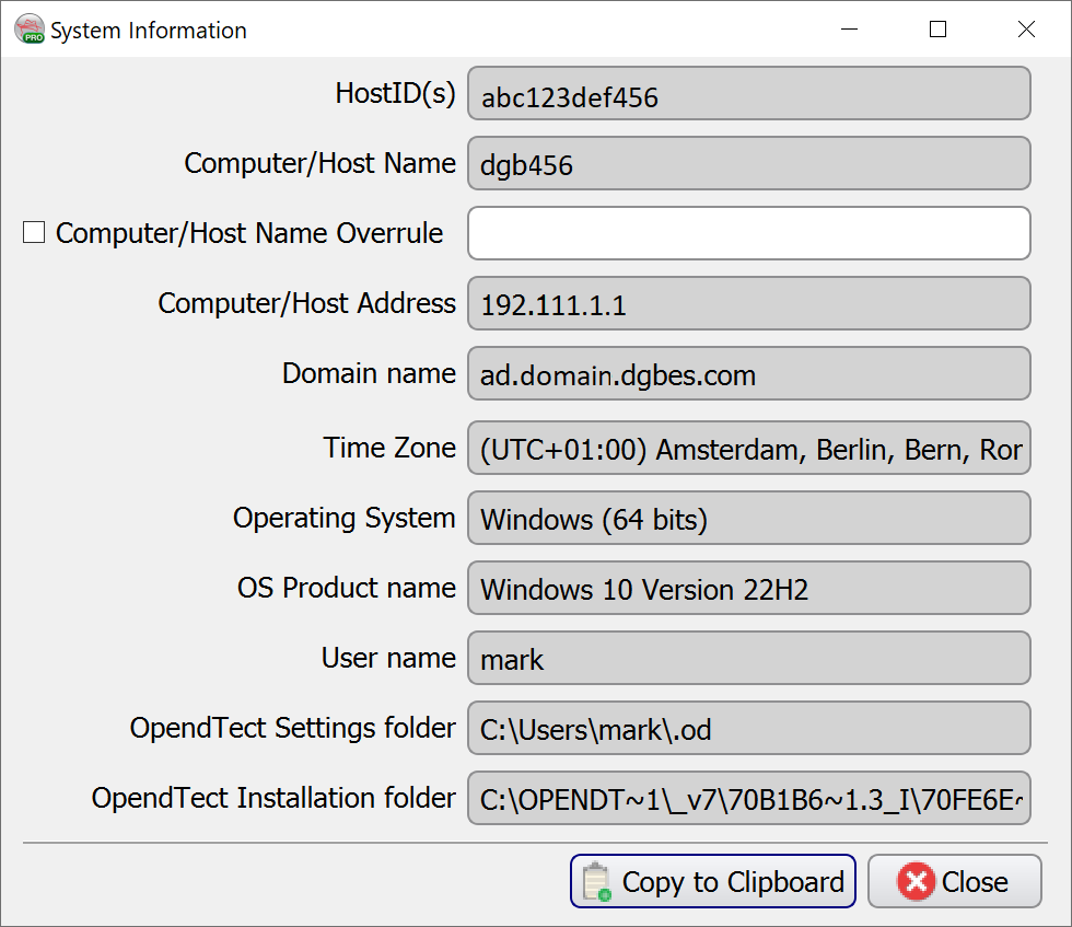 Use the Copy to Clipboard option to copy the information displayed in the window into text format for pasting into an email or document.
