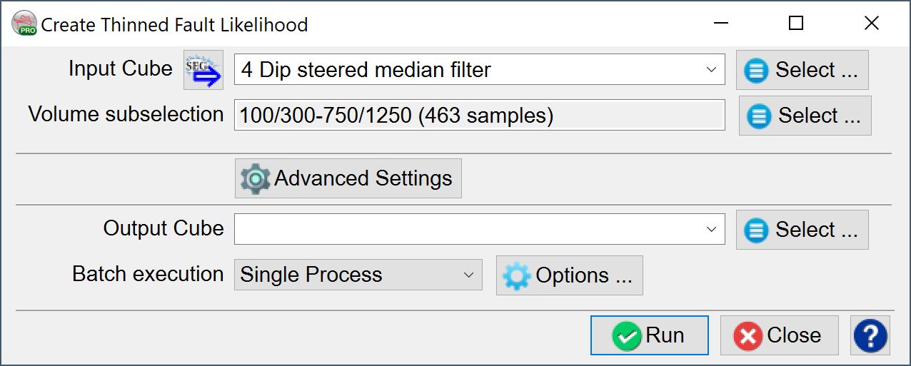 Input Fault Likelihood Cube: Select or Create a Fault Likelihood Volume.