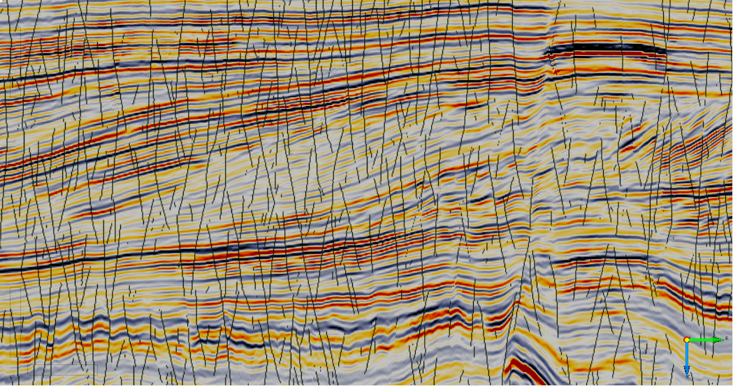 Figure 1. Smoothed seismic with Thinned Fault Likelihood attribute overlay.