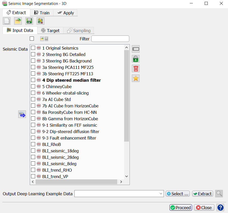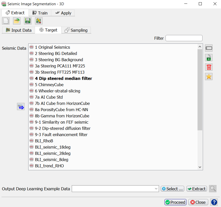 Target tab, select the target seismic volume containing the labels. In the example this volume is called “classification”.