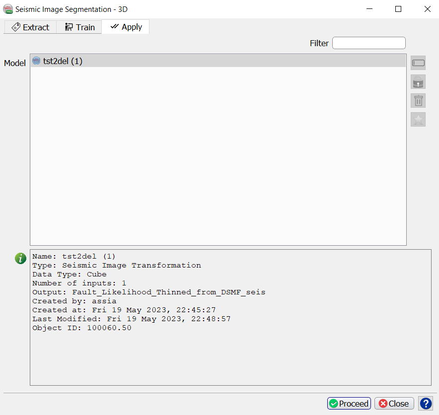 Once the Training is done, the trained model can be applied. Select the trained model and press Proceed.