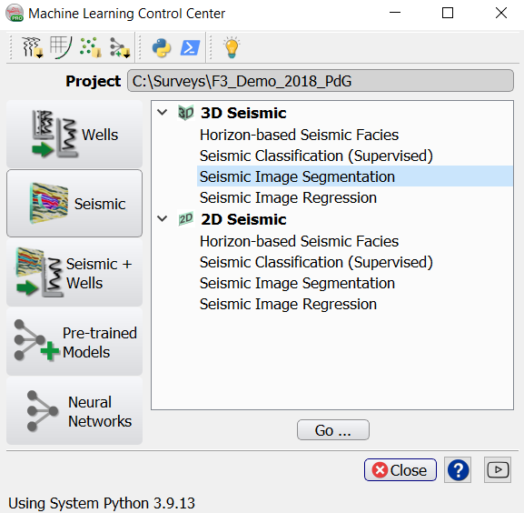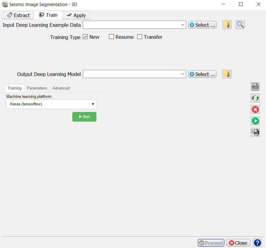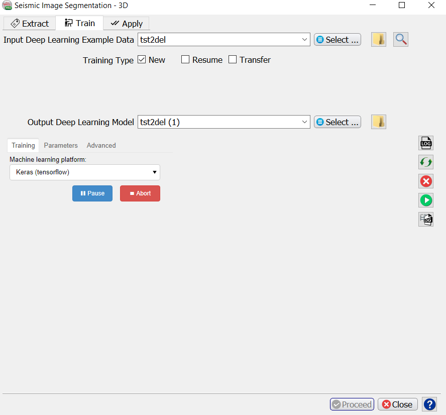 After the training data is selected the UI shows which models are available. For seismic image workflows we use Keras (TensorFlow).