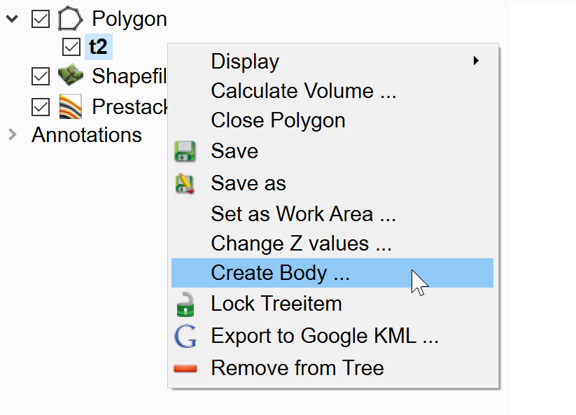 - Right-click on the new polygon name and select Create body