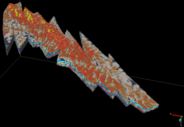 The setup will create and display the output body. An example of a body of sand-waves from offshore seismic data is shown below.