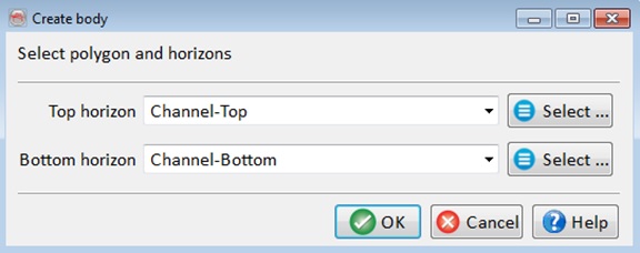 - In the pop-up window select the top and bottom horizons to define a vertical limit. Press OK to continue