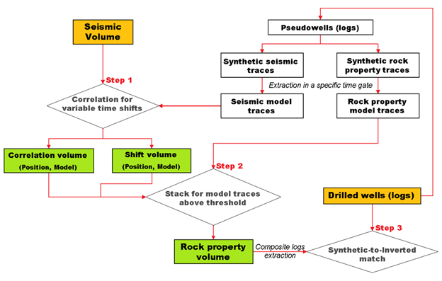 - The property traces from corresponding models with a good correlation are stacked to build the output probability grids.