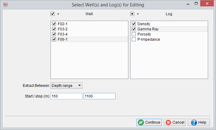 Depth range: The logs can be directly extracted between a particular depth range: