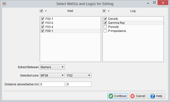 icon in the Manage Wells window. Multiple wells can be selected at once along-with the various logs. The logs can be extracted between: