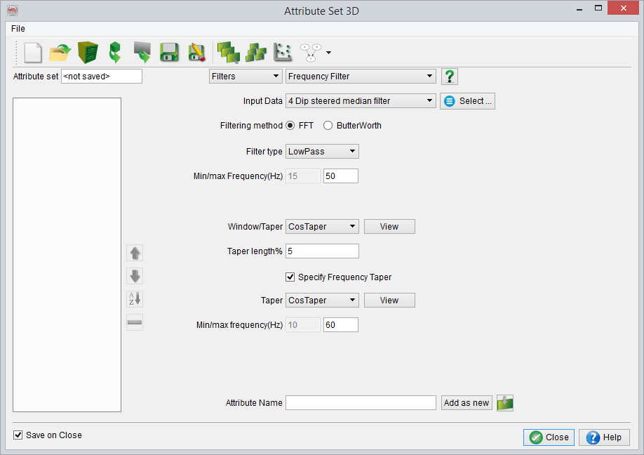 Frequency taper settings in the attribute definition (for filter type: 'BandPass').