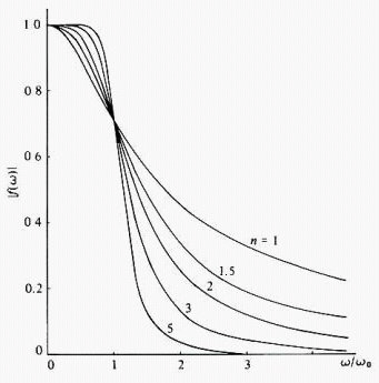 The curves of the Butterworth filter for various numbers of poles