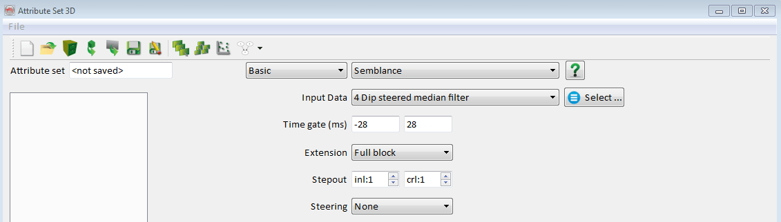 - Full Block: Semblance is calculated using all possible traces in the column defined by the time-gate/step-out. Beware of potentially long processing times with large time-gates/stepouts.