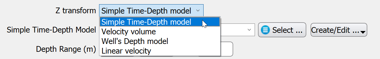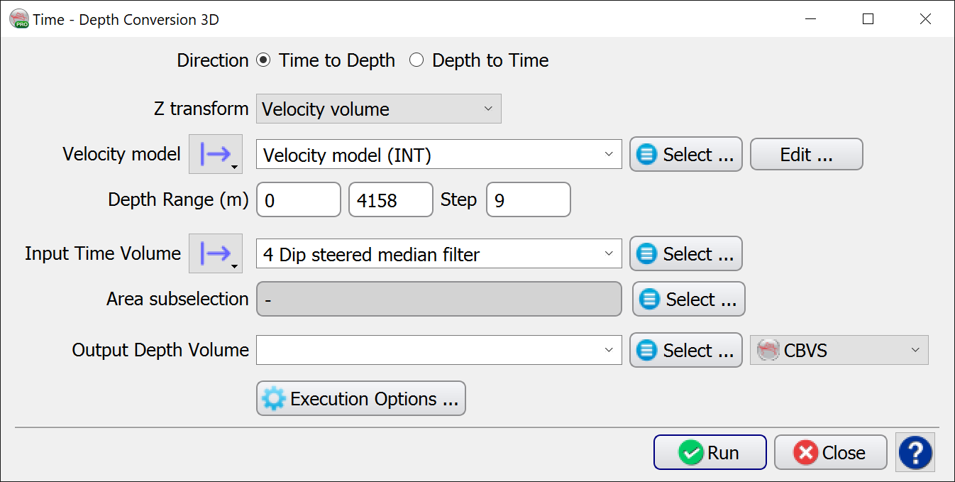 It is also possible to convert from Depth to Time, where, instead of an input Time volume, a input Depth model has to be provided.