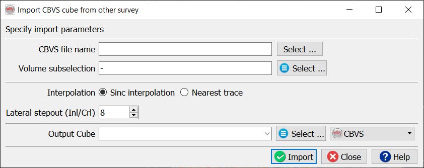 Seismic cubes in cbvs format can also be imported from other survey(s)