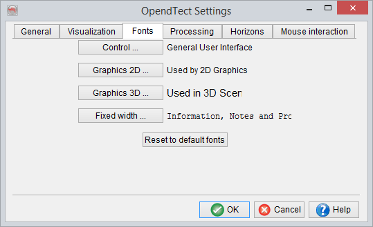 This option brings up an interface containing several tabs for defining various settings in OpendTect: